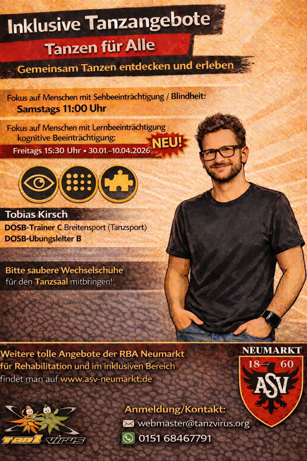 Menschen mit Sehbeeinträchtigung / BlindheitSa 11:00 seit 10.01.2026Menschen mit Lernbeeinträchtigungen / kognitiven BeeinträchtigungenFr 15:30 30.01.–10.04.2026 Neues Angebot: NEU!